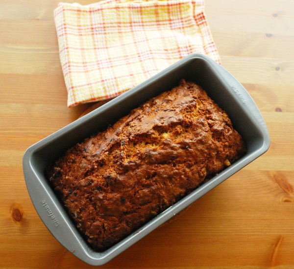 • Pour batter into prepared loaf pan and bake for 60 to 65 minutes, until a toothpick inserted into center of the loaf comes out clean. Let bread cool in pan for 10 minutes, then turn out onto a wire rack to let it cool.