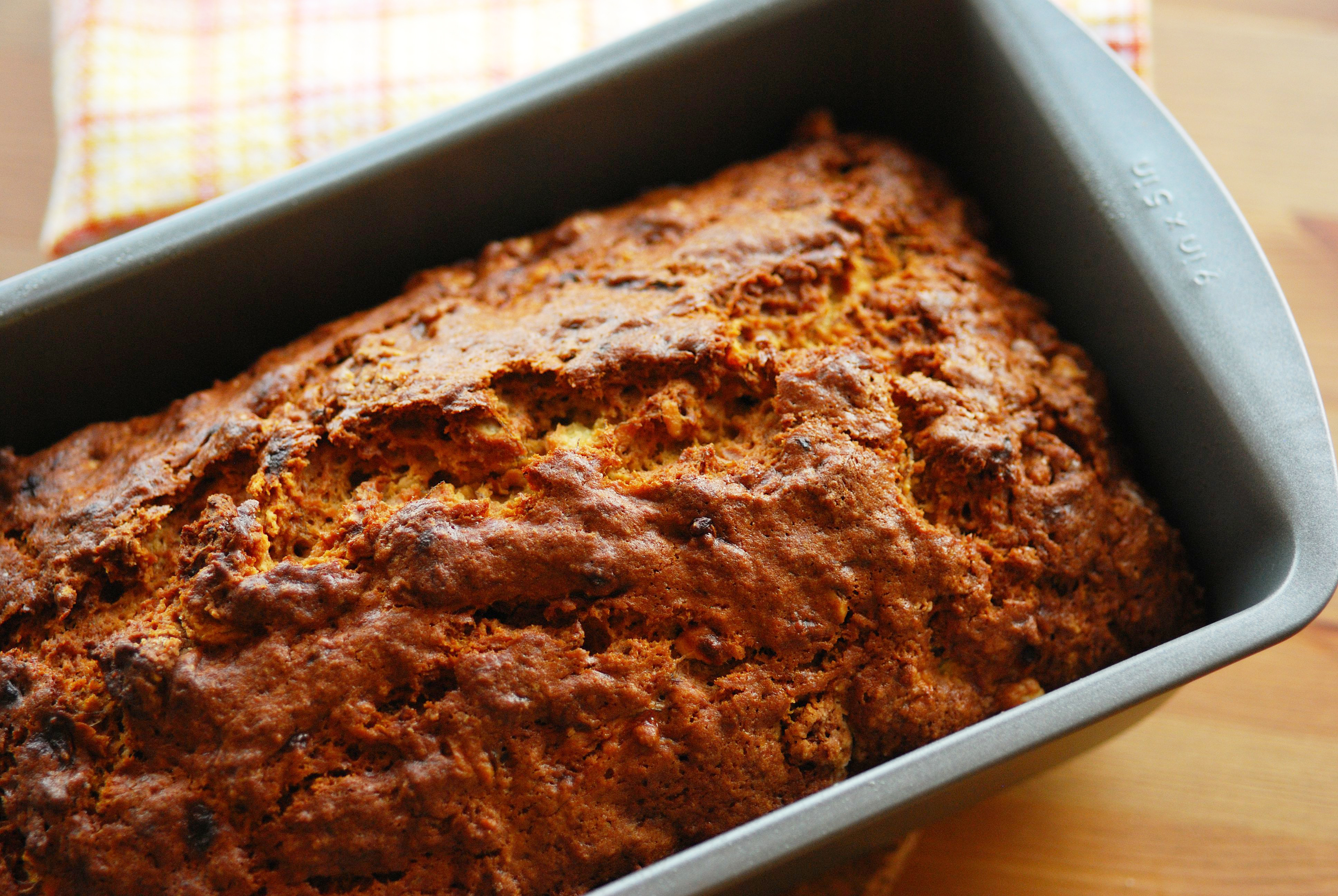 • Preheat oven to 350 degrees F (175 degrees C) for the bread. Lightly grease a 9×5 inch loaf pan.