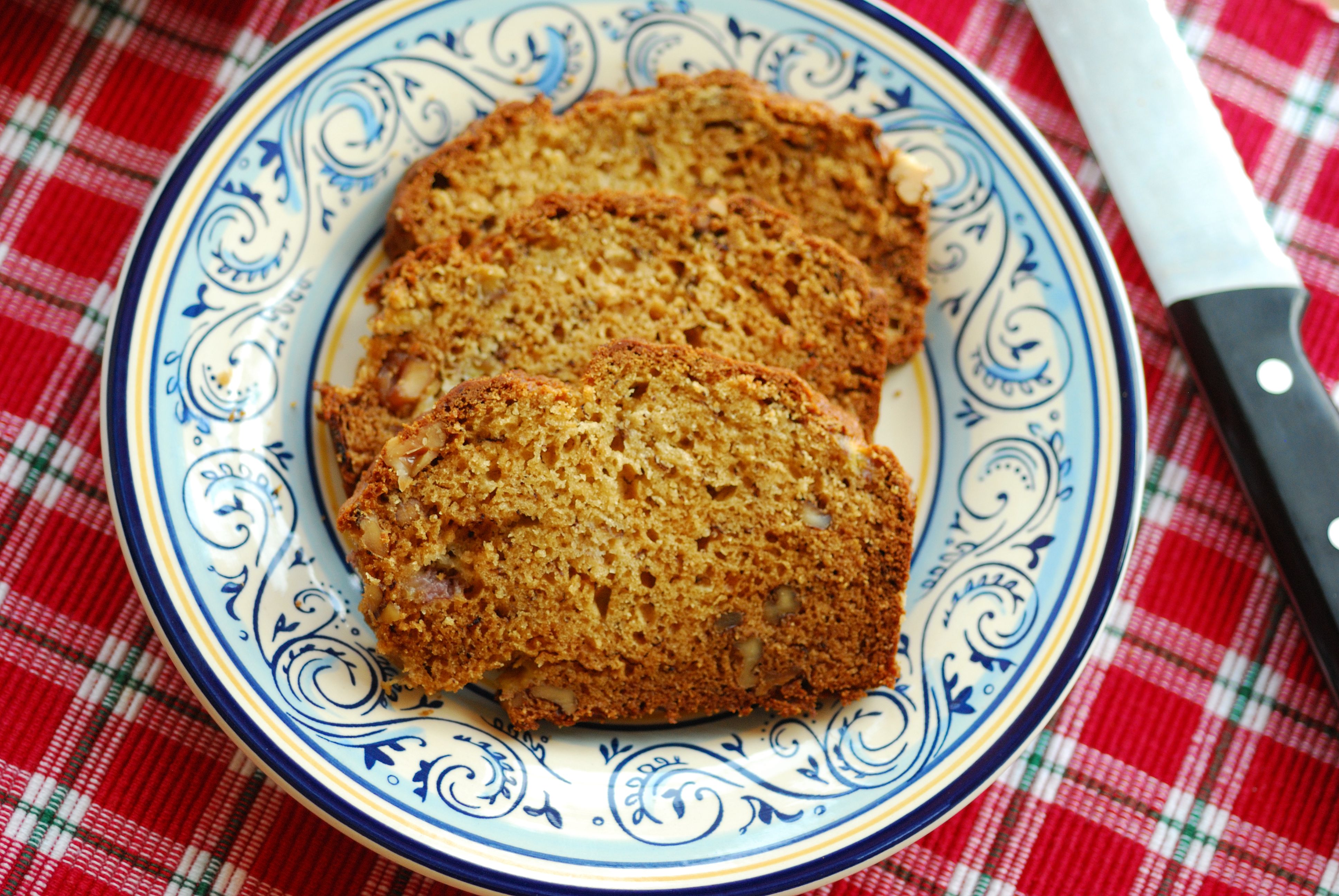 • Stir the egg mixture into the sugar mixture until blended well. Do not whip. Stir egg mixture into flour mixture; stir gently just to moisten – DO NOT over mix. Mix in the walnuts just before pouring batter into loaf pan.